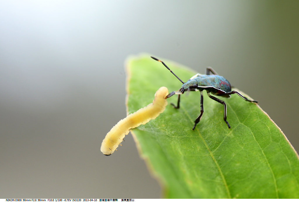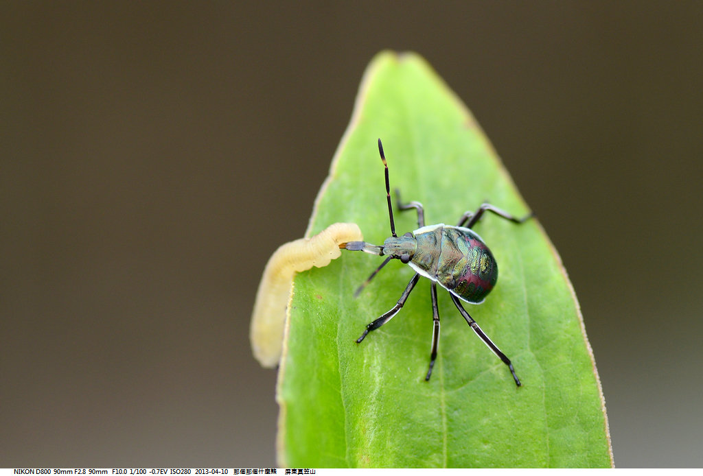 蓬萊厲椿早齡若蟲捕食毛蟲幼蟲 以刺吸式口器先麻痺後再吸食