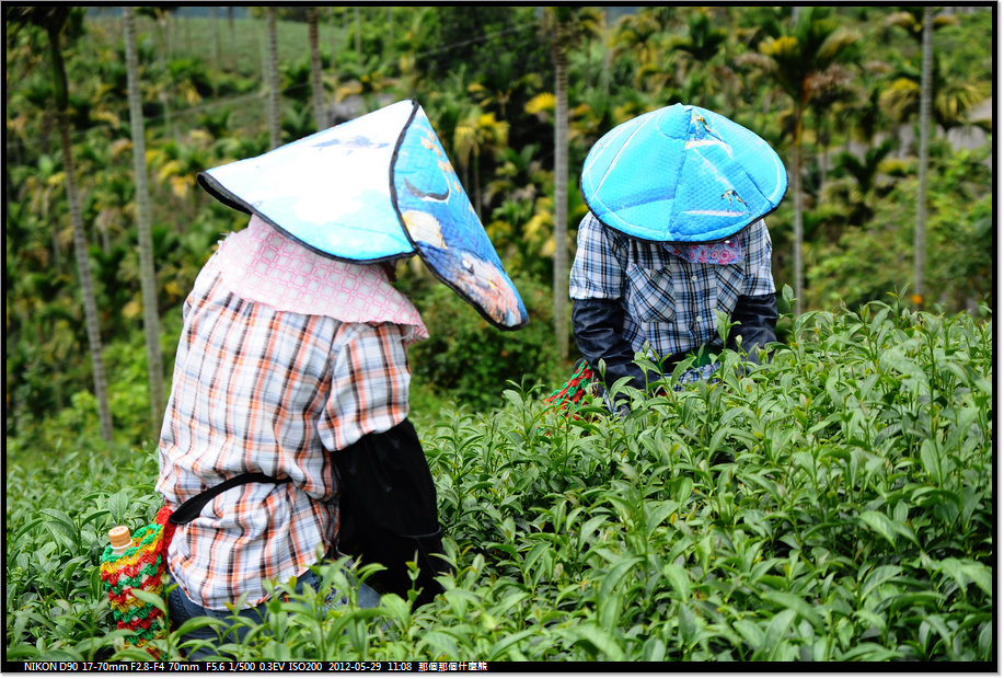 採茶姑娘會露臉 那就補點光 斗笠下的臉部神情會較好