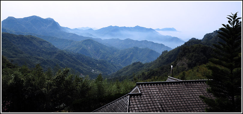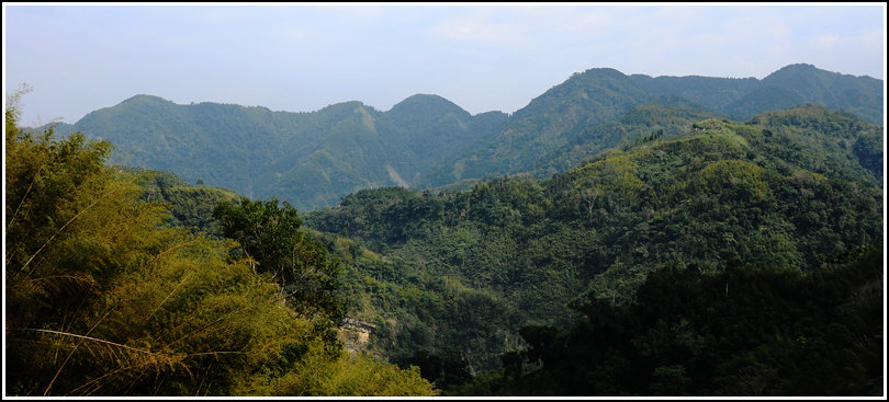 1400公尺高的四大天王山就在眼前 山巒綿延 松林茂密