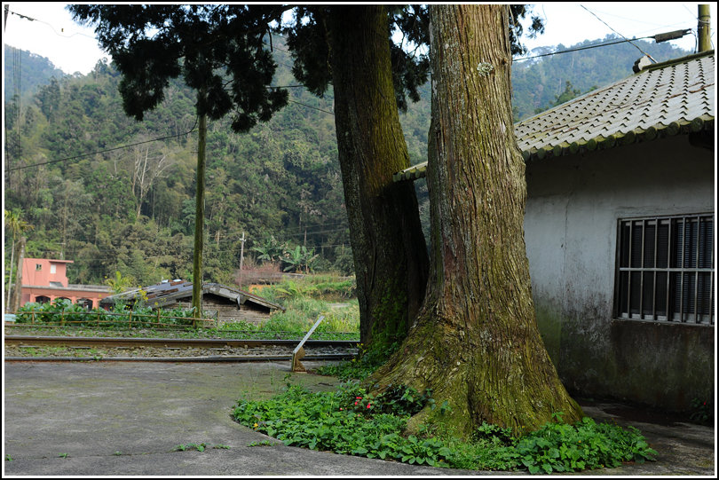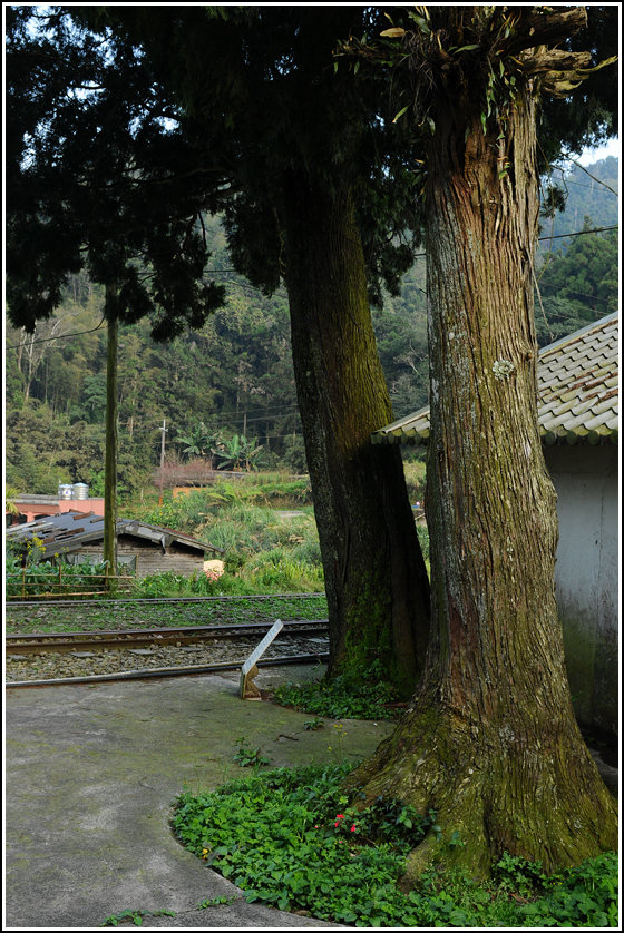 水社寮這兩棵台灣肖楠 前頭大C形鐵軌 是最顯眼的地標