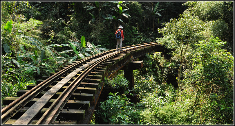 19與 20號隧道之間 有兩段石墩木棧道 兩條鐵軌之間是懸空的 行走中間木板 仍有些許壓力