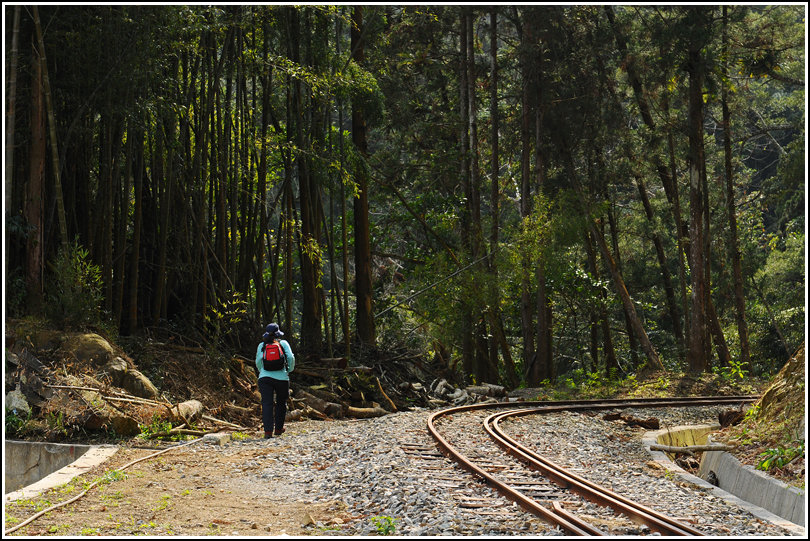 沿途杉林、孟宗竹林、麻竹林密佈 沉浸於森林浴之中 除了腳踩的是鐵軌 跟走山路沒什麼不同