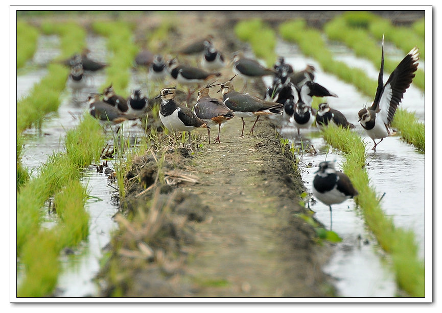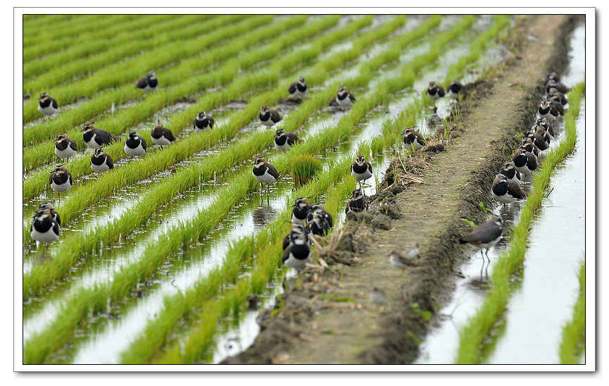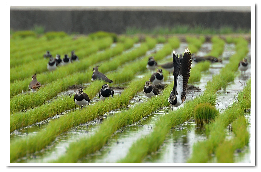 小辮鴴成群出現在農田覓食 十分壯觀