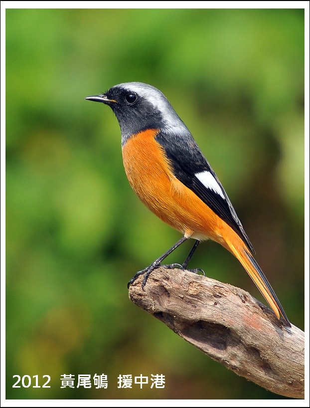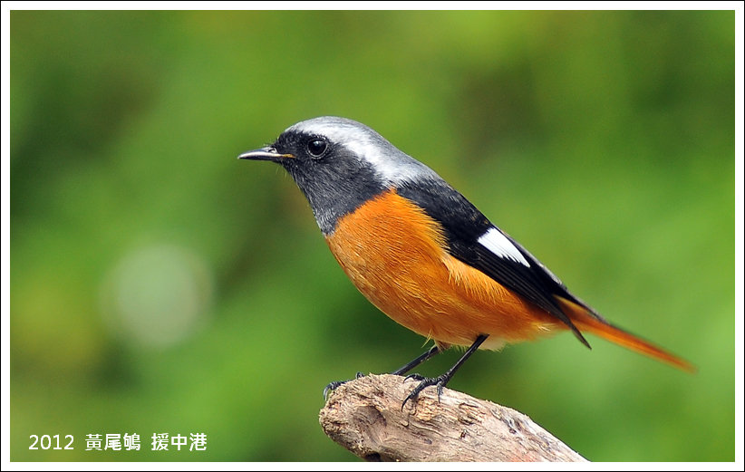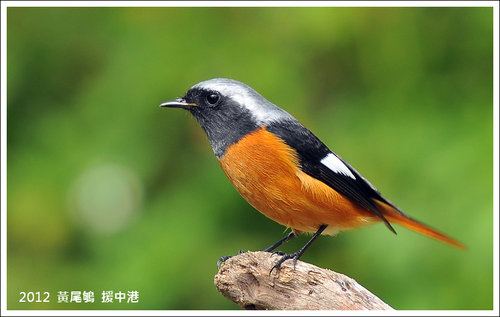 黃尾鴝雄鳥 極好辨認 身上羽毛是由黑色、白色、銀灰色與橘色組成
