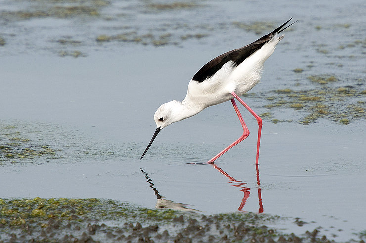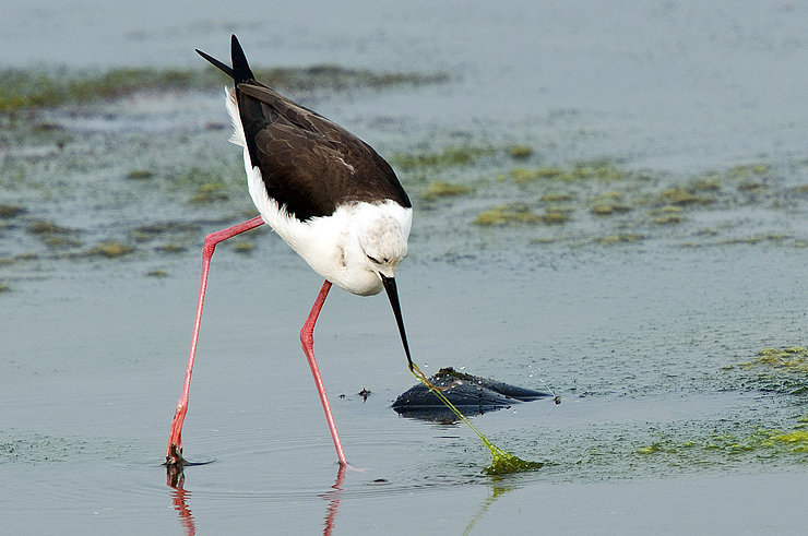 由於腿較長可在水位較深的魚池 濕地 涉水覓食