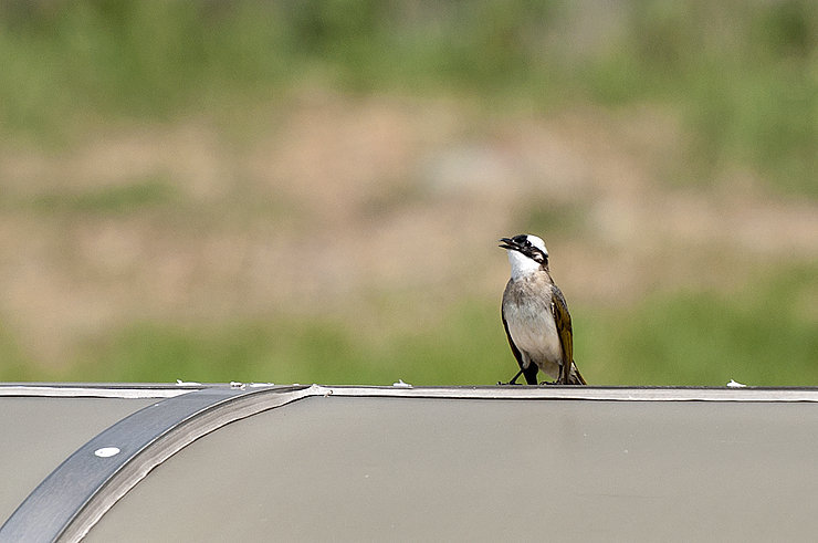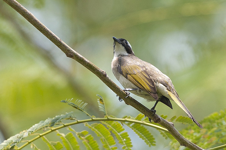 身體橄欖綠色 頭頂黑色,頭部有大白斑 眉和枕羽白色,故名「白頭翁」