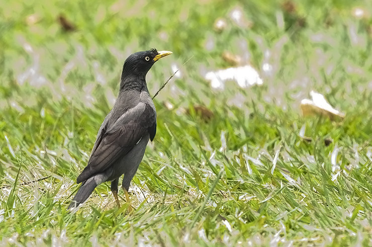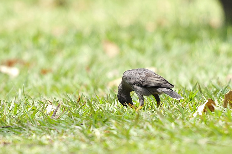 嘴喙為黃色,身體大致為灰黑色 數量極多,通常出現在開闊樹林地帶,常群聚於樹上,極為吵雜 棲地:平地至低海拔住家附近