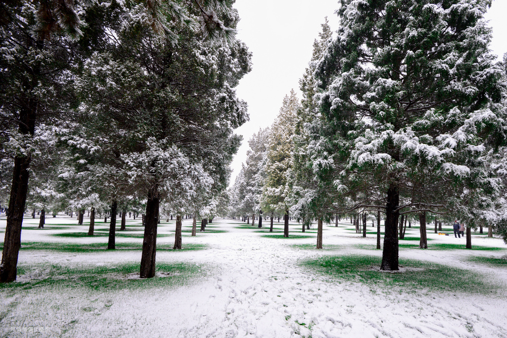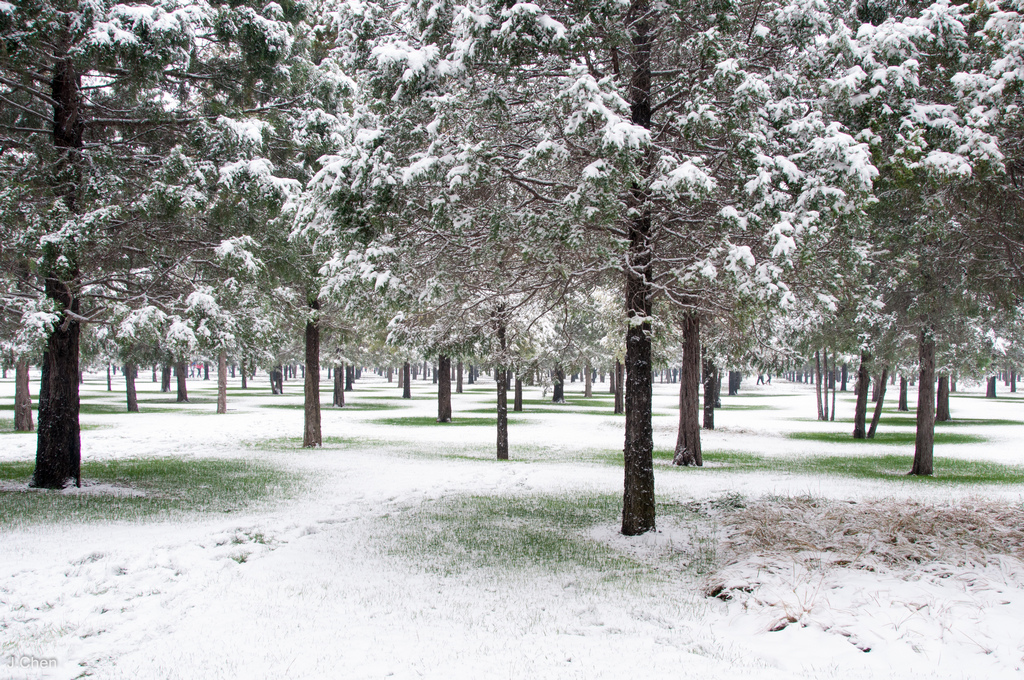 今天的白雪被柏樹擋住,形成了綠色的圓圈