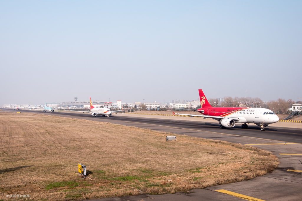 青島機場 飛機排隊等放行起飛