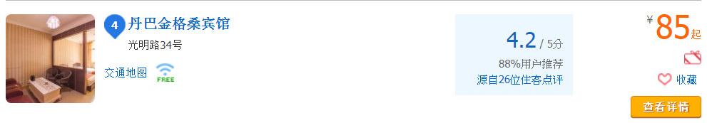 在手機上搜尋附近的酒店,攜程網看到這一家金格桑賓館,在光明路上,便宜,評語又很好