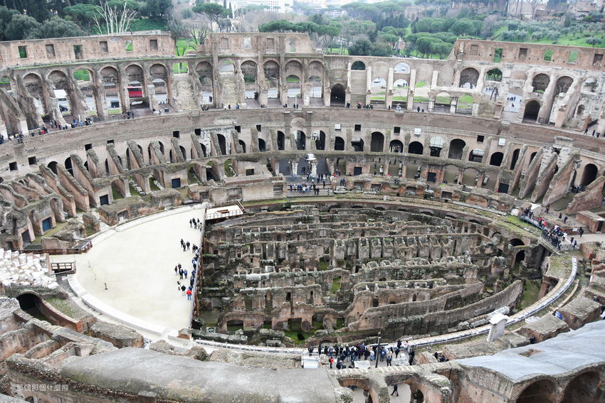 一樓是人獸競技處,二樓是皇帝、元老院、貴族,三樓包廂給有錢人看的,四樓及更高的觀景樓給一般民眾觀賞
