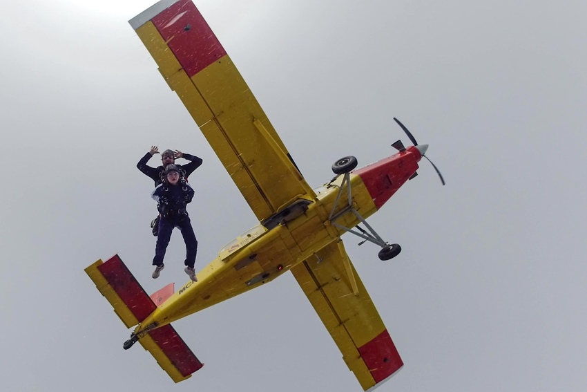 降到某個高度後,攝影師跟教練握手後就準備要先行著地