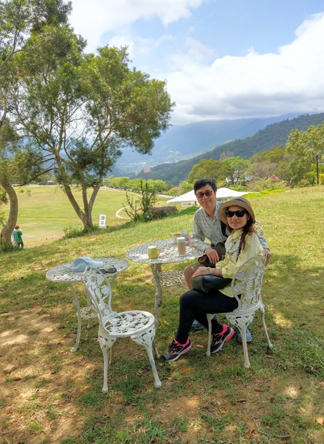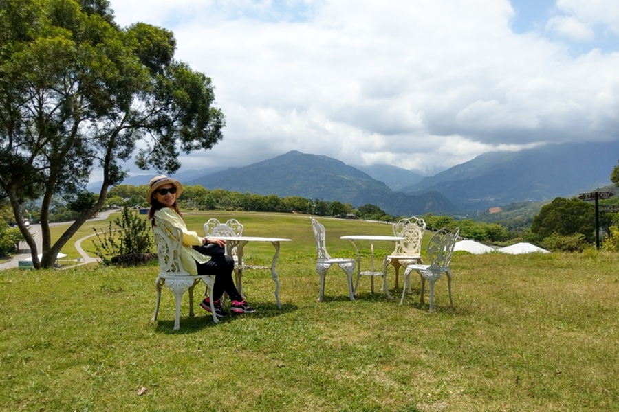 點一杯奶茶,坐在民宿前的山坡上,看著前方的高台大草原