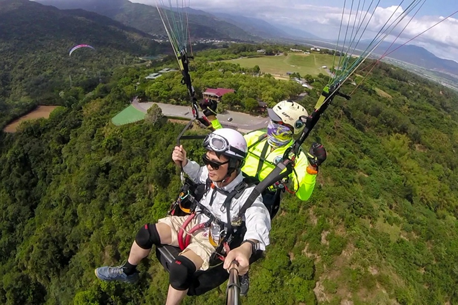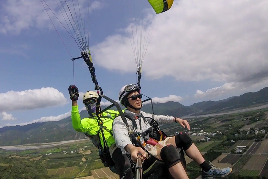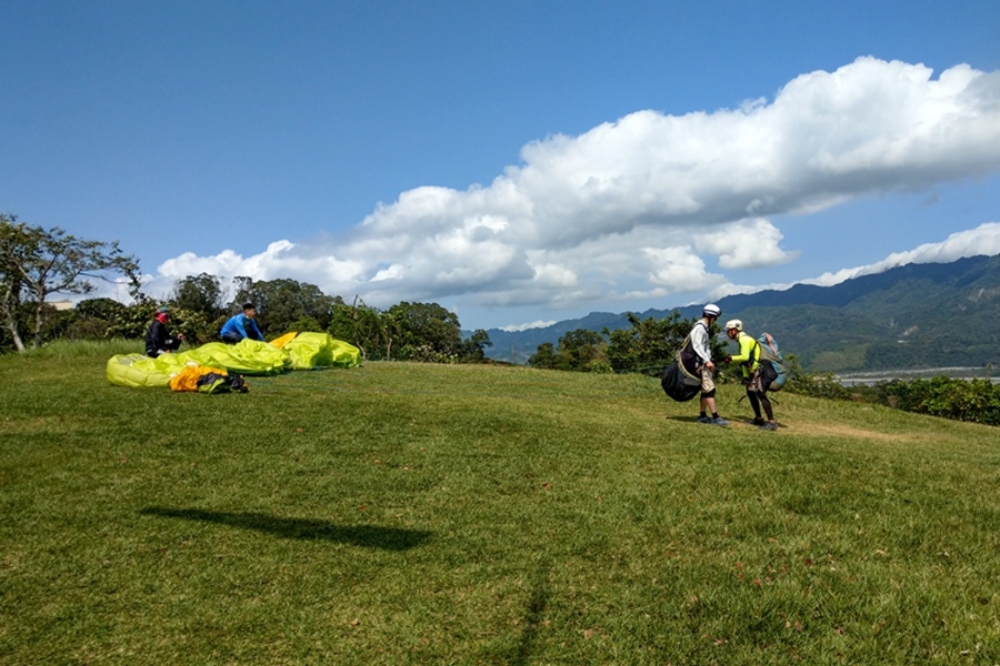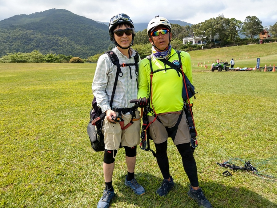 Hi,飛行傘的學員以水平高度向我們揮手,帥極了,我長大以後也要飛飛看