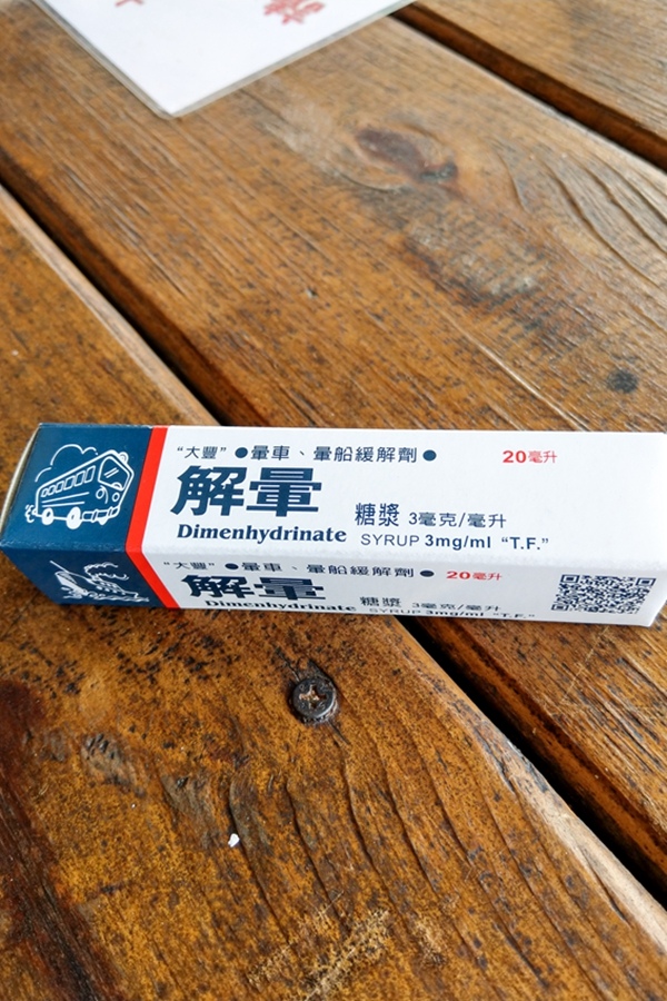 到報名處領了一瓶暈車藥,櫃台說暈車藥跟避孕藥一樣,事後喝、沒效