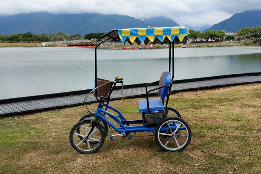 陳在網路上找了一家無負評的藍霆自行車出租,租了一部兩人座特斯拉