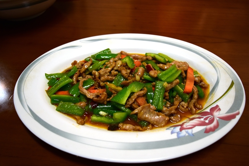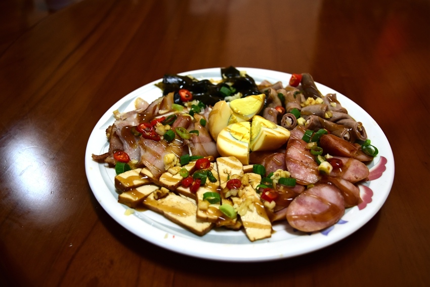 我們點了血腸麵線、滷味拼盤、炸芋頭、青椒炒肉絲