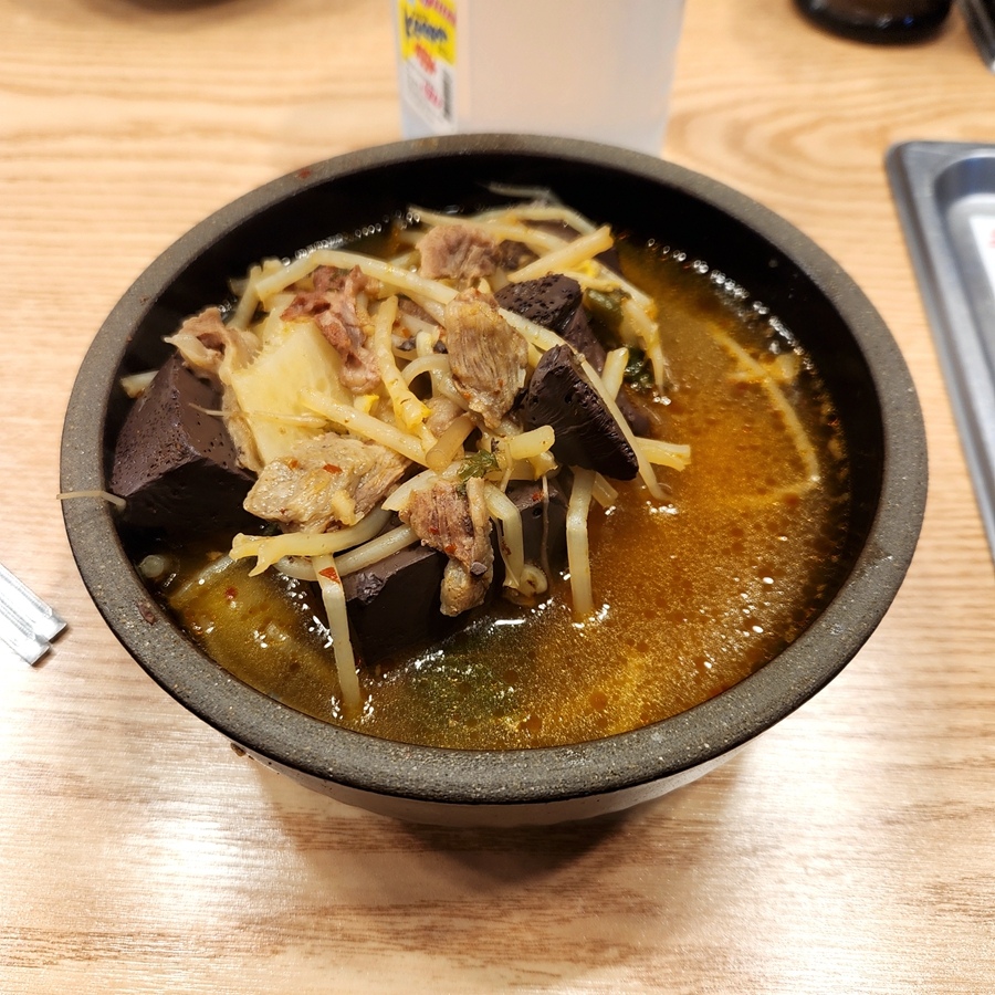 牛肉牛血湯飯,牛血口感接近於豬血,不是鴨血的那樣軟嫩